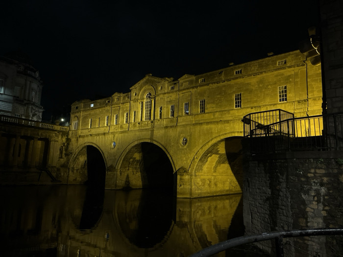 - "The image displays Pulteney Bridge in Bath, United Kingdom, at night" by FM-FUjVz2, licensed under CC BY 4.0