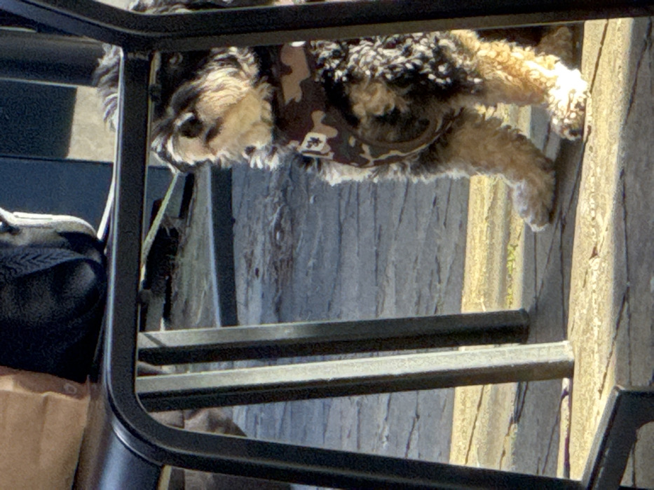 - "An outdoor scene in Reichstett, France, depicts a small, fluffy dog standing on a paved surface" by FM-9wXCm1, licensed under CC BY 4.0