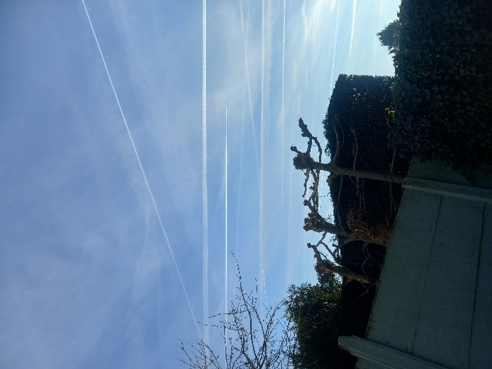 - "The image displays an outdoor scene in Burcht, Belgium, characterized by a clear blue sky traversed by multiple white contrails" by FM-MtLfs2, licensed under CC BY 4.0