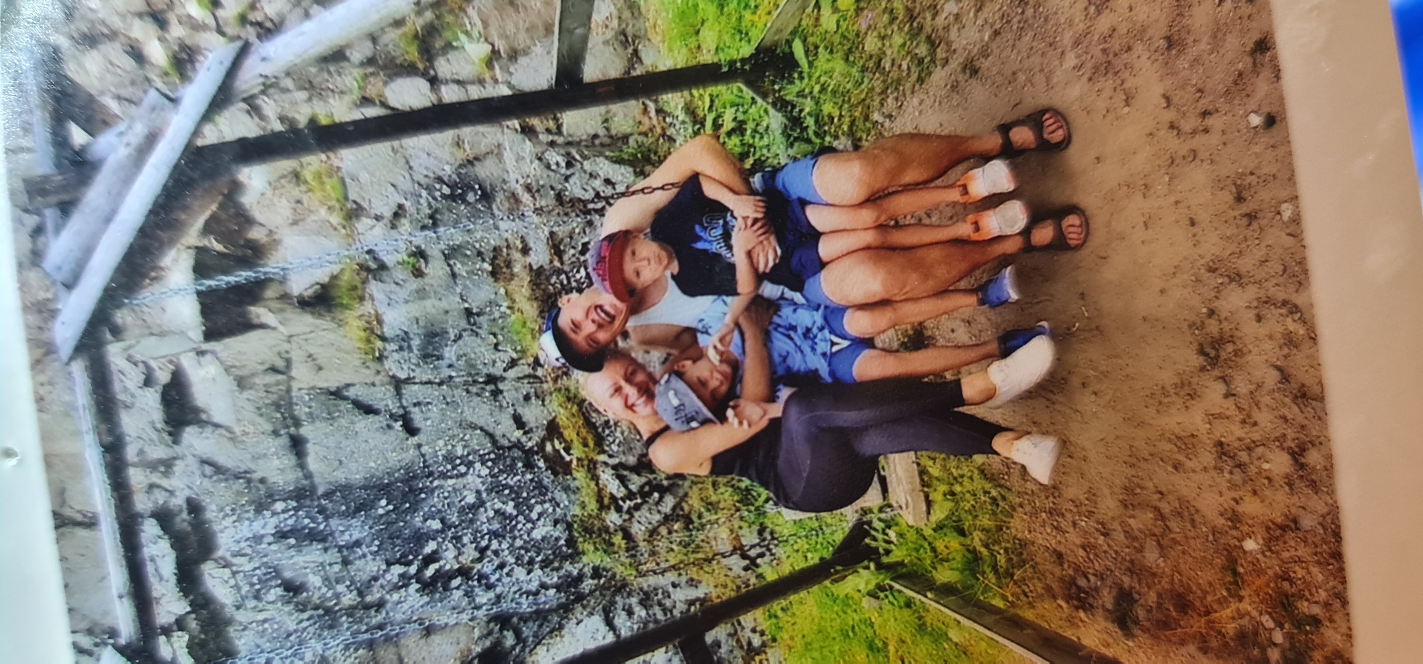 - "A group of five people, consisting of two adults and three children, is seated on a swing constructed of chains suspended from a wooden frame" by FM-7pWFn2, licensed under CC BY 4.0