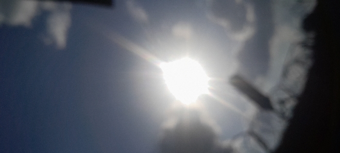 This image displays an overexposed and out-of-focus daytime sky scene located in Ayangba, Nigeria