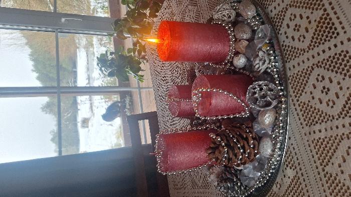 - "The image depicts an indoor setting in Petriškė, Lithuania, featuring an Advent wreath placed on a table with a view of a snowy outdoor landscape through a window" by FM-rvqAv1, licensed under CC BY 4.0