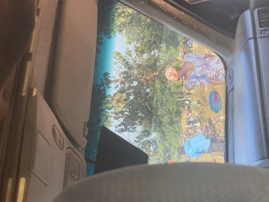 The image, captured from the interior of a vehicle looking outward, depicts an outdoor scene in Wang, Nigeria