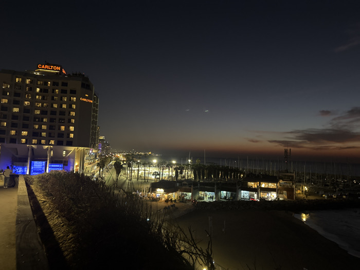 - "The image depicts an elevated nighttime or late twilight view of the Tel Aviv beachfront in Israel, specifically overlooking the Tel Aviv Marina and adjacent coastal area" by FM-3fVBh1, licensed under CC BY 4.0
