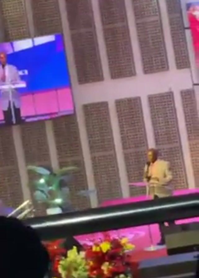 A video captures a man speaking from a stage, likely during a presentation or speech