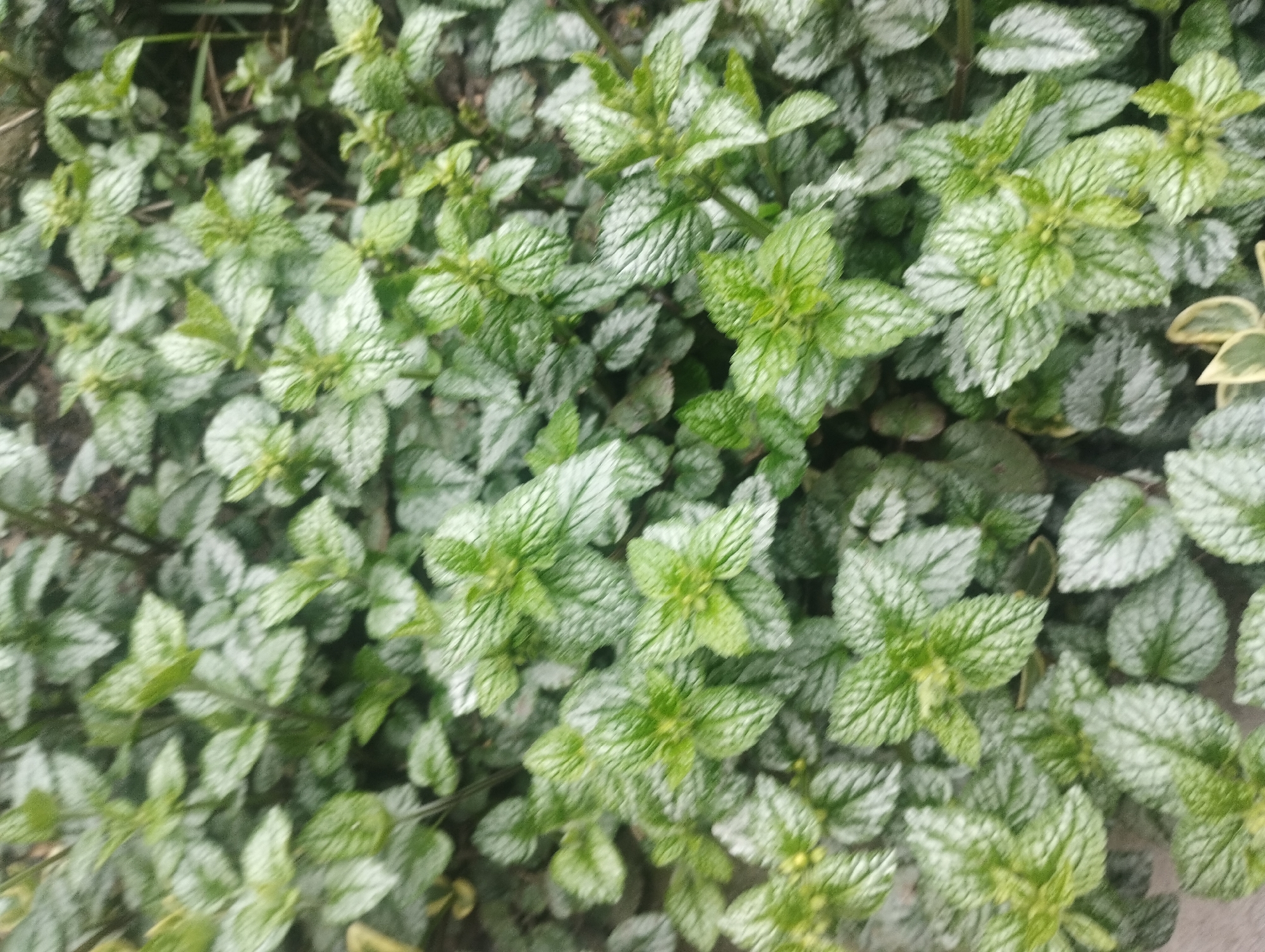 dense patch of Lamium maculatum, commonly known as spotted dead-nettle, growing in Knezha, Bulgaria. The plants have characteristic heart-shaped leaves with a prominent silver or white central stripe. Some leaves are more green than others. The overall impression is of a groundcover plant with textural leaves.