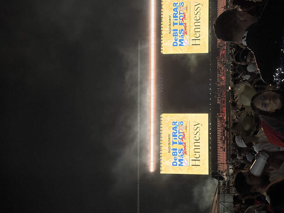 - "The image captures a concert scene at night, featuring Bad Bunny's "De Bi Tirar Mas Fotos World Tour" sponsored by Hennessy, displayed on large screens" by FM-a4hKB2, licensed under CC BY 4.0