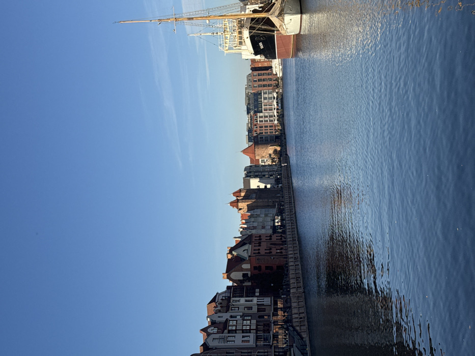 - "The image displays a panoramic view of the Motława River in Gdańsk, Poland, under a clear blue sky with minimal high-altitude wisps of cloud" by FM-R7pAQ2, licensed under CC BY 4.0