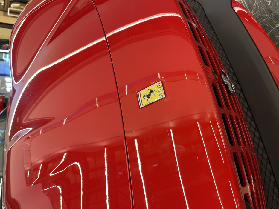 - "A close-up, angled view captures the front section of a red Ferrari sports car, observed within an indoor setting in Tashkent, Uzbekistan" by FM-6QPhj2, licensed under CC BY 4.0