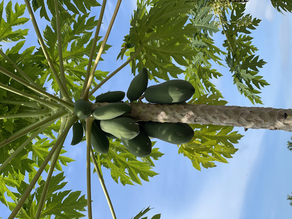 - "The image displays a papaya tree (Carica papaya) situated in Mns Asan, Indonesia, viewed from a low angle against a clear blue sky" by FM-56aBo1, licensed under CC BY 4.0