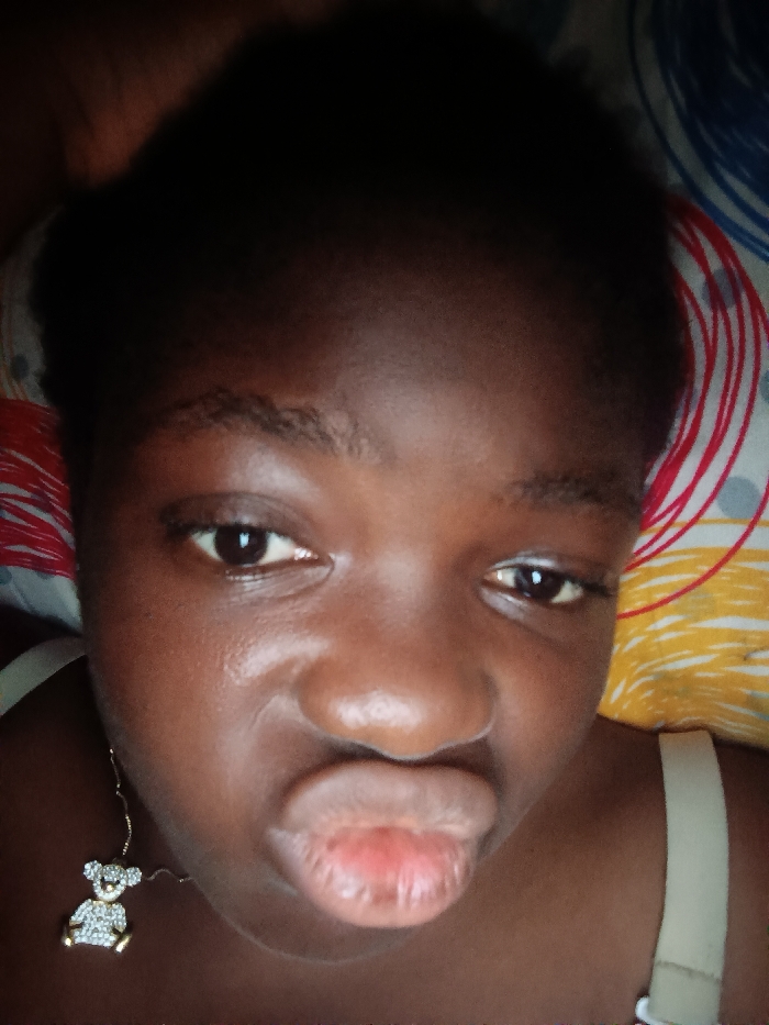 A close-up photograph, taken in Orie Uratta, Nigeria, shows an individual with dark skin