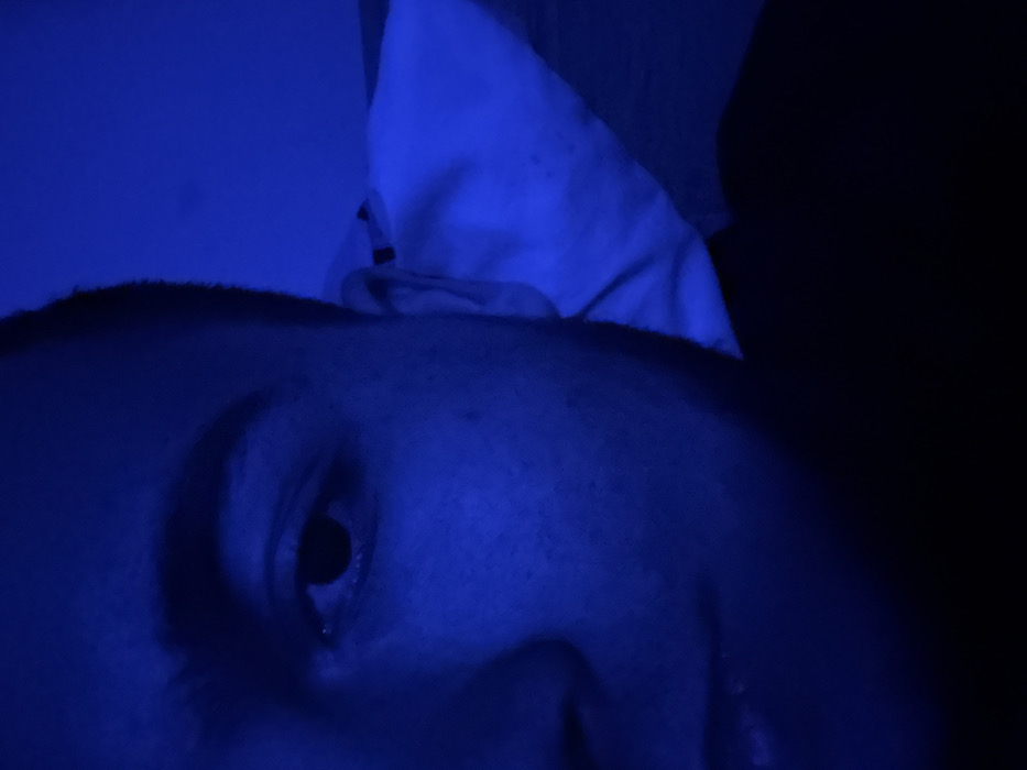 - "The scene depicts a close-up view of the left side of a human face and upper torso, illuminated predominantly by a strong blue light, occurring indoors in the city of Nadarevo, Bulgaria" by FM-cBlX62, licensed under CC BY 4.0