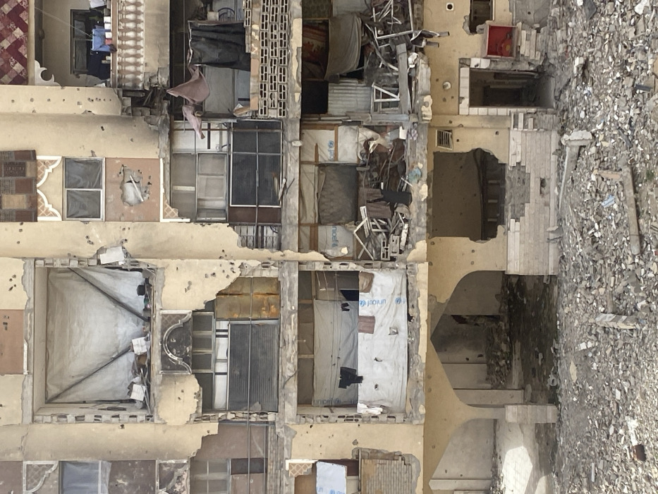 - "This image depicts a heavily damaged multi-story residential building in Khan Yunis, Palestinian Territory" by FM-U9GOy1, licensed under CC BY 4.0