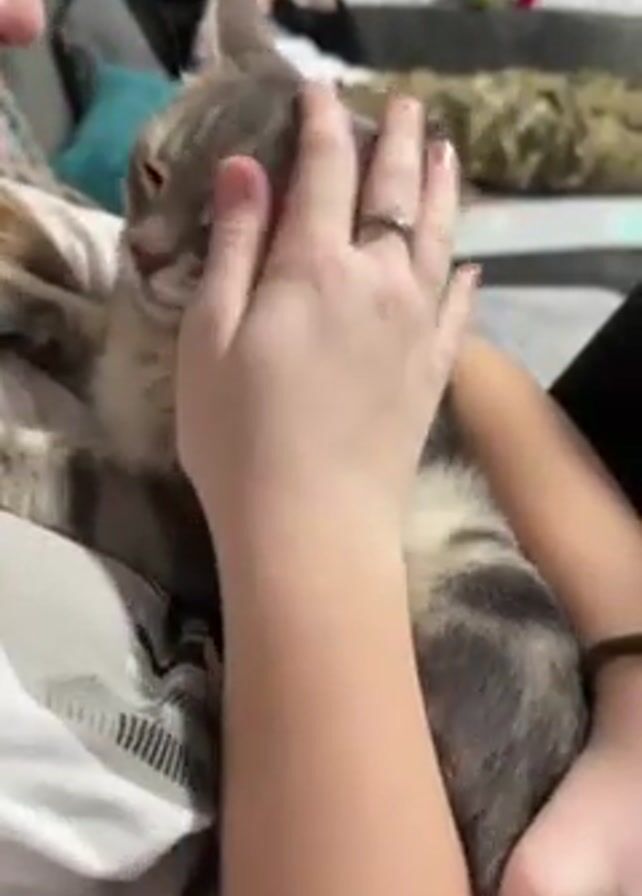 - "A woman is holding a grey tabby cat in her arms and petting it under the chin" by FM-mxn022, licensed under CC BY 4.0