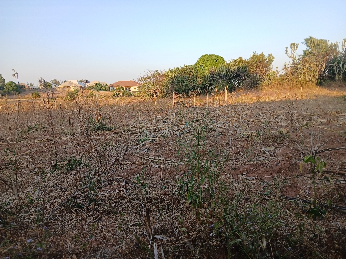 A field dominates the scene, littered with remnants of harvested crops, mostly dry stalks