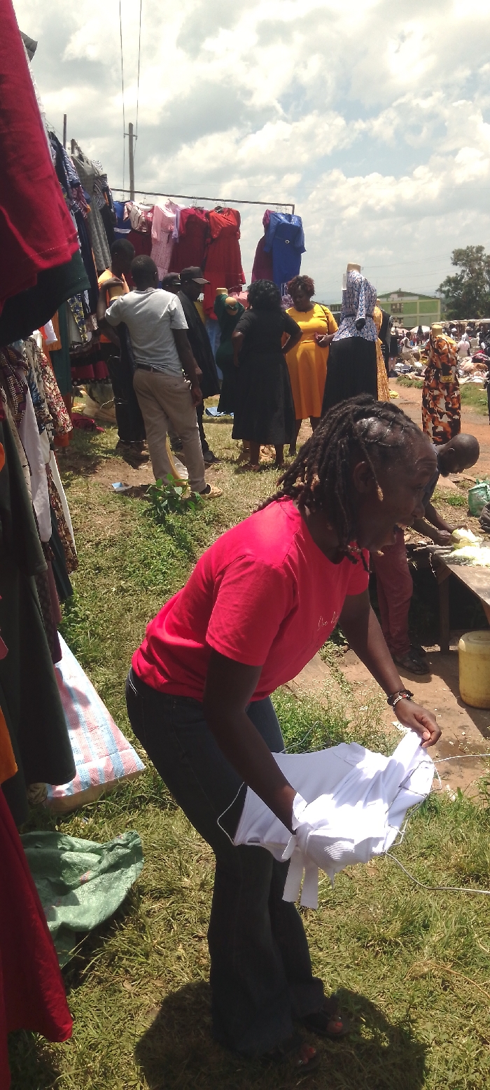 An outdoor market scene in Webuye, Kenya, is depicted under a partly cloudy sky