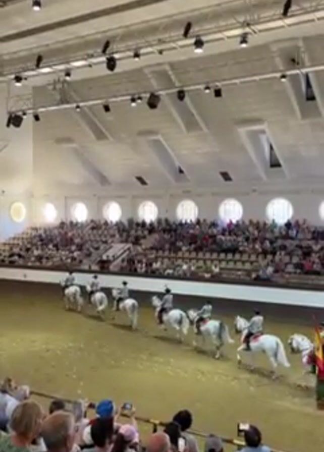 - "group of riders on white horses performing in an indoor arena before a seated audience" by FM-E1hwL2, licensed under CC BY 4.0
