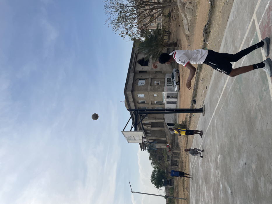 - "A basketball player in a white shirt and black shorts prepares to shoot a ball on an outdoor court" by FM-LCYzr2, licensed under CC BY 4.0