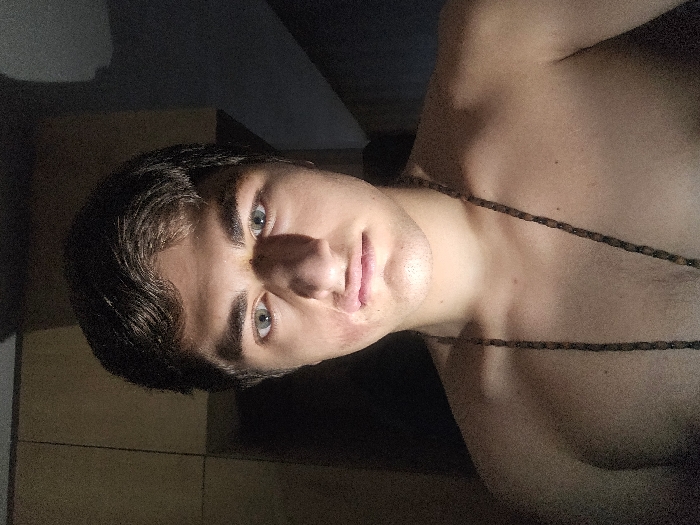 - "A young adult male is depicted in a dimly lit, close-up portrait, facing directly towards the camera" by FM-oPbvC2, licensed under CC BY 4.0