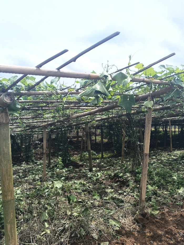 - "The image displays an agricultural field in ឃុំ ផាត់សណ្ដាយ, Cambodia, featuring a bamboo trellis system supporting various green leafy vines" by FM-u3nIC2, licensed under CC BY 4.0