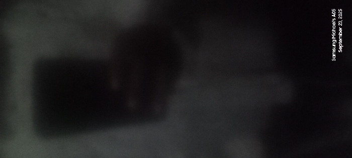 - "The image, recorded by "Samsung Michael's A05" on September 23, 2025, is critically underexposed, blurry, and monochromatic in appearance, primarily composed of deep shadows and indistinct grey tones" by FM-nfTWf2, licensed under CC BY 4.0