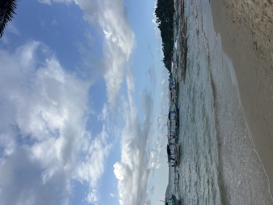 The image displays a coastal view in Roxas, Philippines