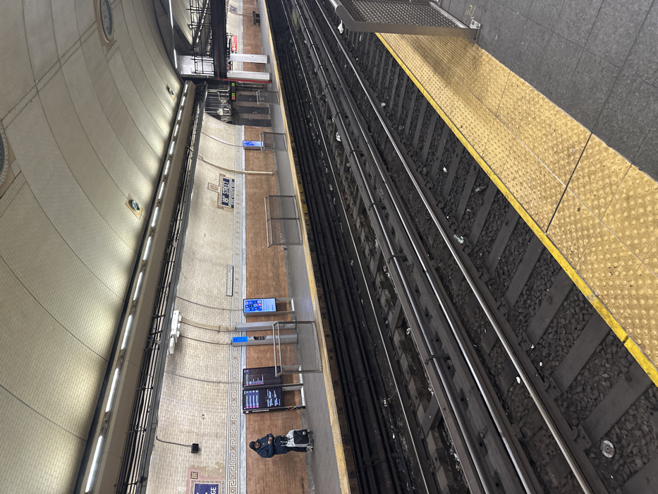 - "An elevated view of a subway station platform featuring tracks, a yellow textured edge, and brick walls" by FM-ja7R73, licensed under CC BY 4.0