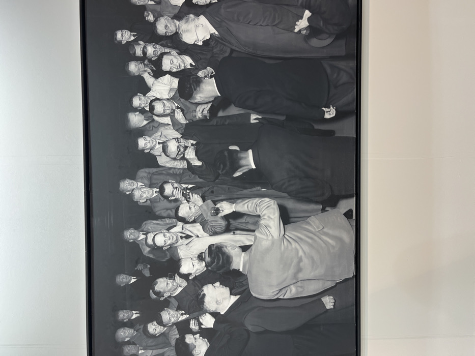 - "A framed grayscale artwork presents a crowd of men in suits, viewed from above" by FM-VYYYD2, licensed under CC BY 4.0