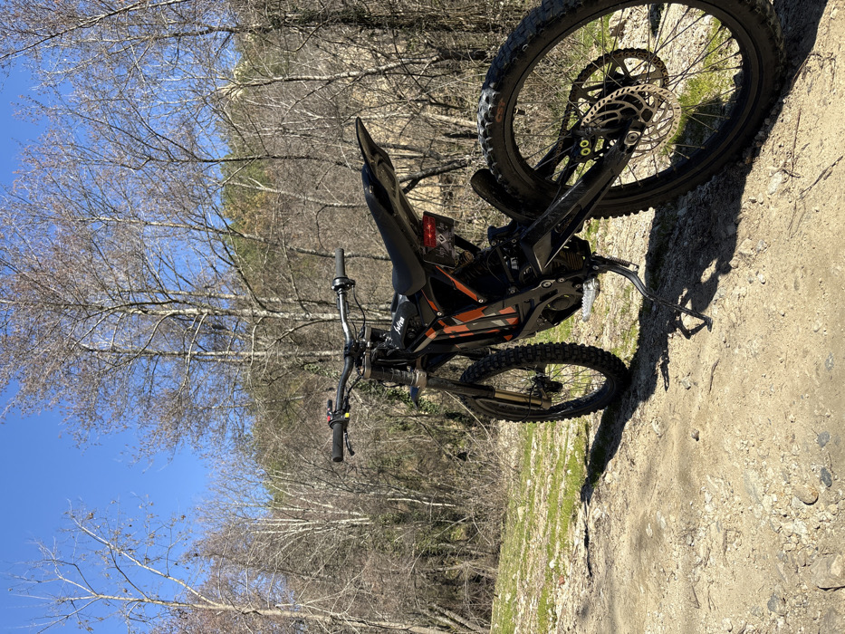 - "An electric dirt bike, identified as a Sur-Ron model with black and orange paneling, is stationary on a dirt path in a wooded area" by FM-7QNAW2, licensed under CC BY 4.0
