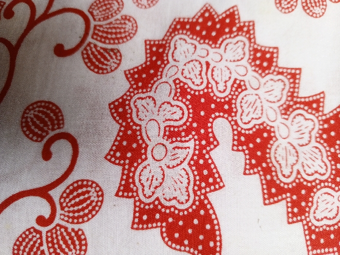 The image displays a close-up view of a patterned fabric, likely cotton or a similar material
