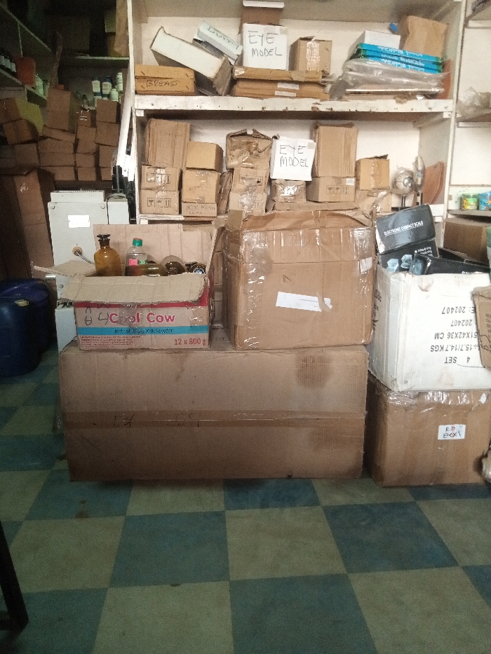 The image depicts an indoor storage or shop area located in Maiburiji, Nigeria