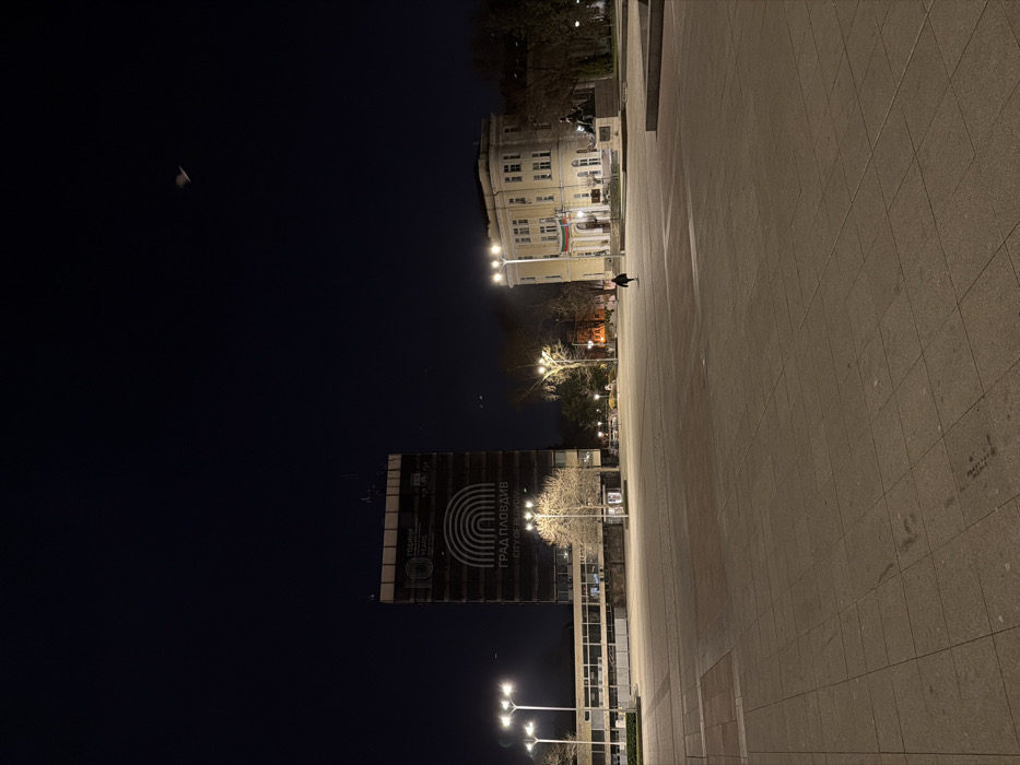 - "The scene depicts a wide, tiled public square in Plovdiv, Bulgaria, at night" by FM-uD9243, licensed under CC BY 4.0
