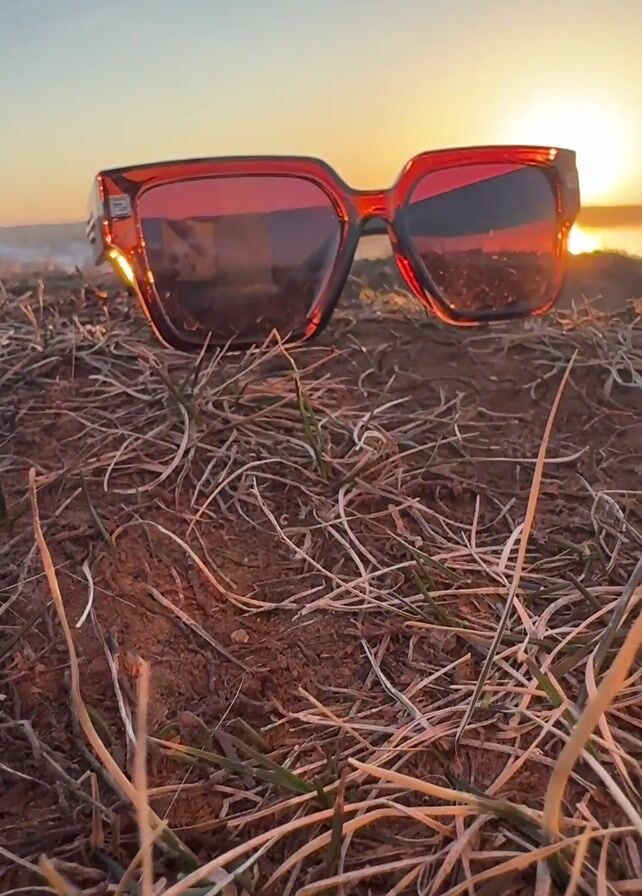 The video opens with a pair of sunglasses placed on dry grass and soil