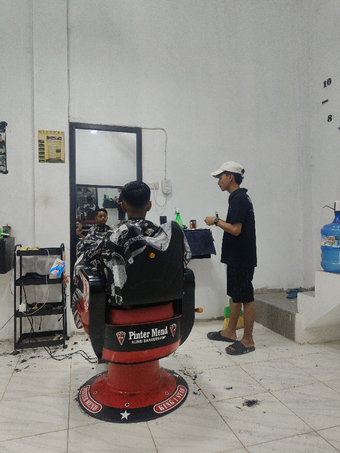 This image depicts the interior of a barbershop located in Gampongpaya, Indonesia