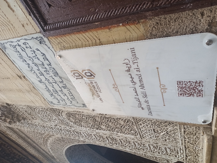 - "The image presents an exterior view of a building facade in Fez, Morocco, identified by signage as the Zaouia de Sidi Ahmed al-Tijani" by FM-u5tDi1, licensed under CC BY 4.0