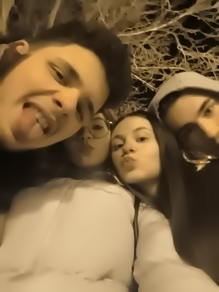 - "A low-light, upward-angled group selfie captured in Pernik, Bulgaria, depicts four young individuals" by FM-74ozu1, licensed under CC BY 4.0