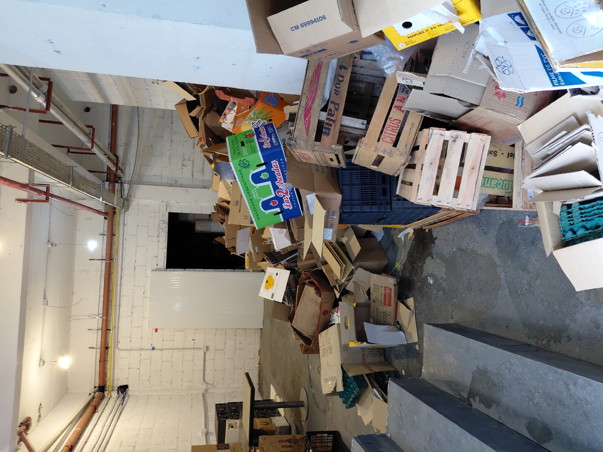- "The image depicts an indoor scene in Ushuaia, Argentina, characterized by a substantial accumulation of refuse, primarily composed of cardboard boxes and wooden crates" by FM-HAKh33, licensed under CC BY 4.0