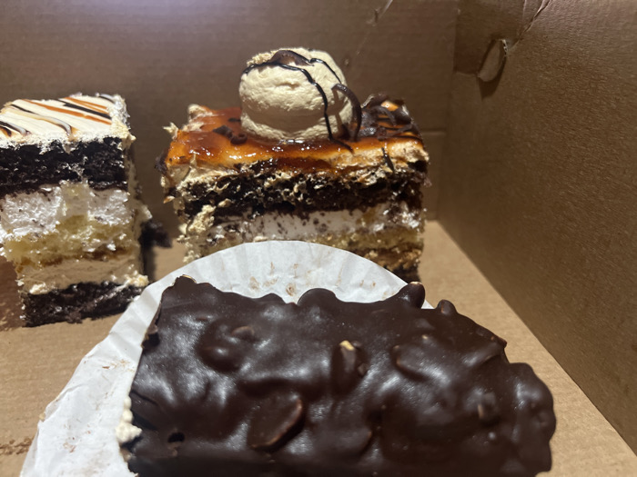 - "The image displays three assorted cake pieces within a cardboard box" by FM-l44z72, licensed under CC BY 4.0