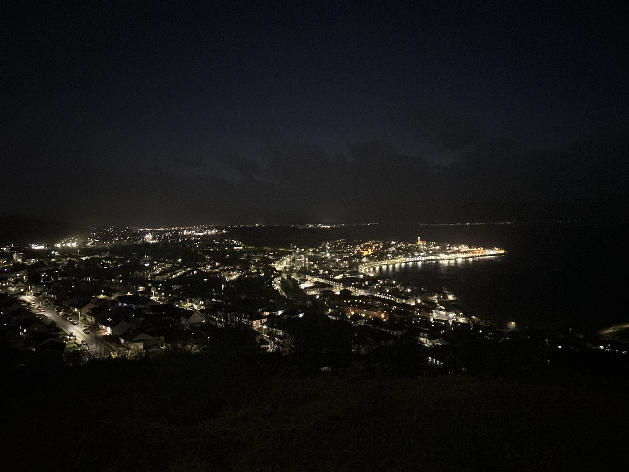 nighttime view of Gourock, United Kingdom from an elevated perspective