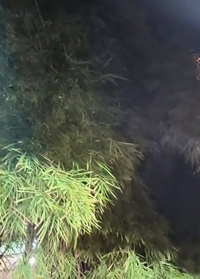 The video is taken at night and shows a bamboo plant