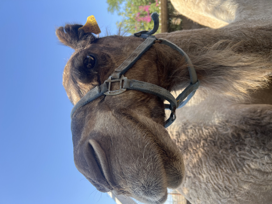 - "A forensic image captured in Hod Hasharon, Israel, displays a close-up, low-angle view of a Dromedary camel's head and upper neck under a clear blue sky" by FM-dmGQR2, licensed under CC BY 4.0