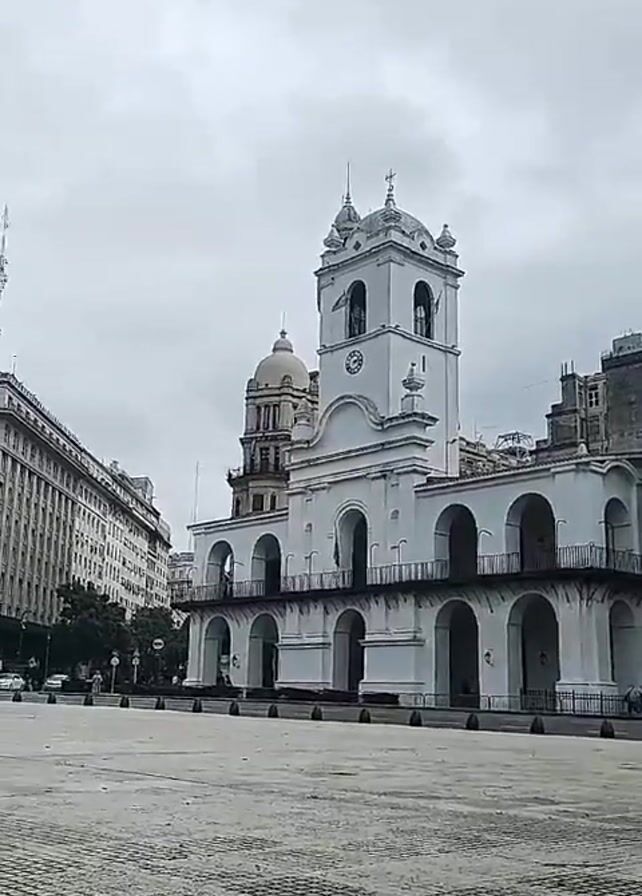 The video captures a wide shot of Plaza de Mayo in Buenos Aires