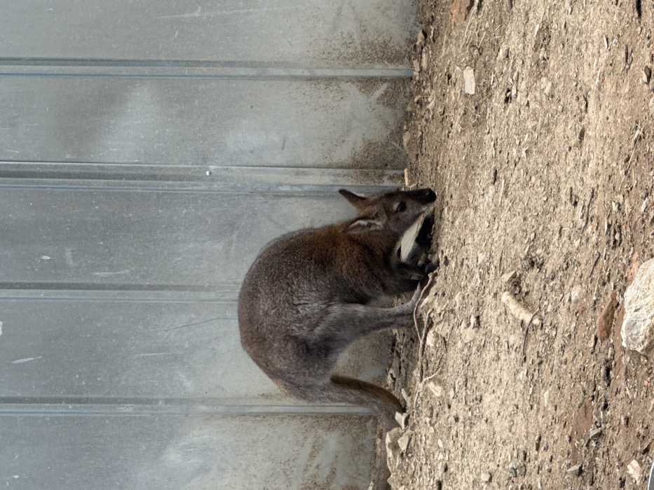 - "The scene depicts a solitary Red-necked Wallaby (Macropus rufogriseus) foraging on barren ground, situated in what is presumably an enclosure within the city of Leskovets, Bulgaria" by FM-QK5pm1, licensed under CC BY 4.0