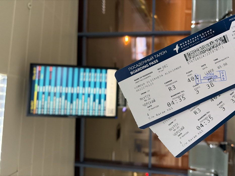 - "Two boarding passes for Komova Elizaveta Aleksandr, traveling from Yakutsk to Cherskiy via carrier R3, flight 40" by FM-Opnib2, licensed under CC BY 4.0