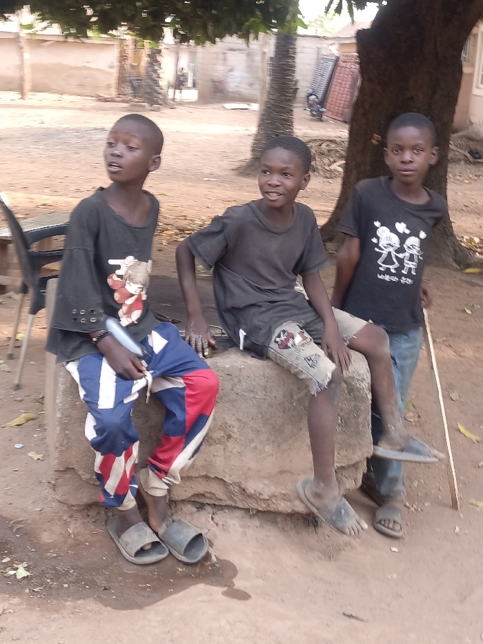 The image captures three male children situated outdoors in Akwanga, Nigeria