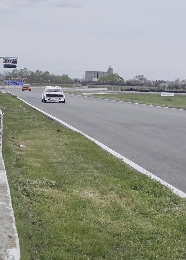 white Lada 2107 race car speeding down a racetrack