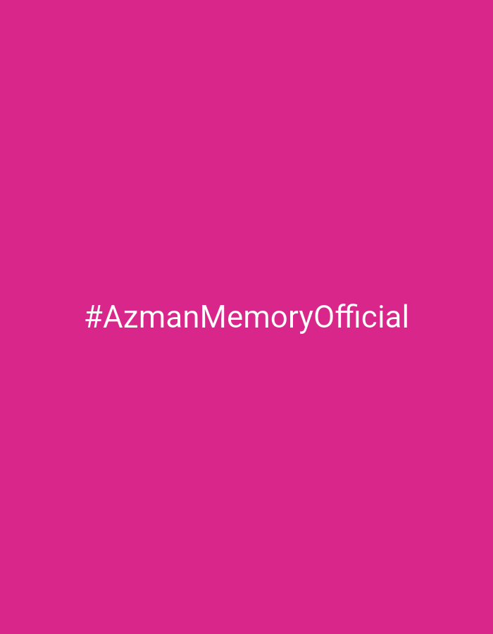 The image displays a solid fuchsia pink background. Centered within this background, in white sans-serif text, is the hashtag "#AzmanMemoryOfficial". No people, physical objects, actions, or environmental features are present beyond the colored field and text. The described location is the city of Pie, Indonesia.