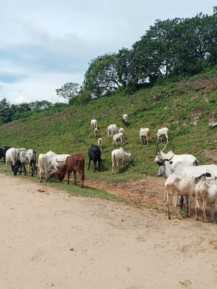 - "The image depicts a rural or semi-rural scene in the City of Unknown, Unknown, featuring approximately two dozen cattle grazing on a grassy hillside under a partly cloudy sky" by FM-h0NOh2, licensed under CC BY 4.0