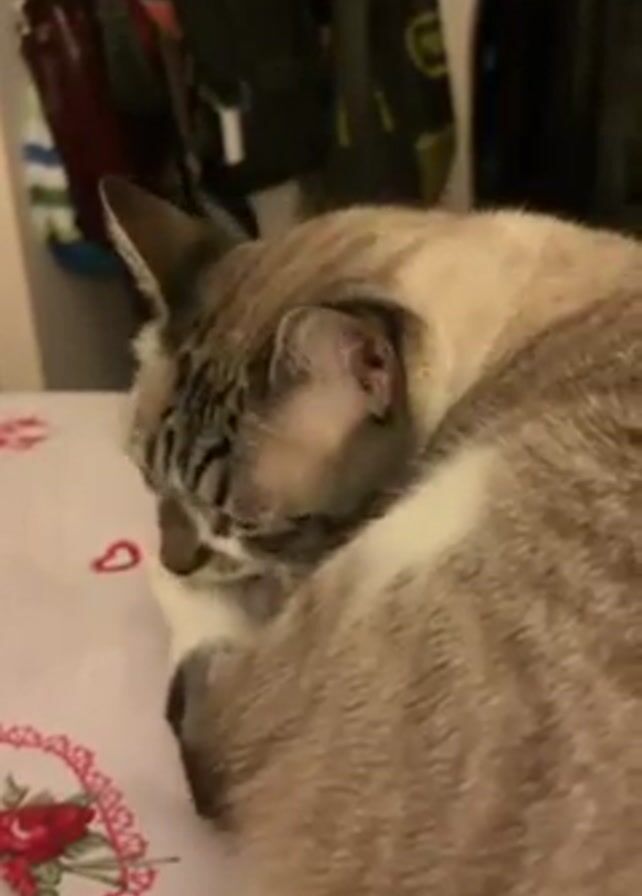 - "A cat is lying on a bed and grooming itself" by FM-t9Rps1, licensed under CC BY 4.0