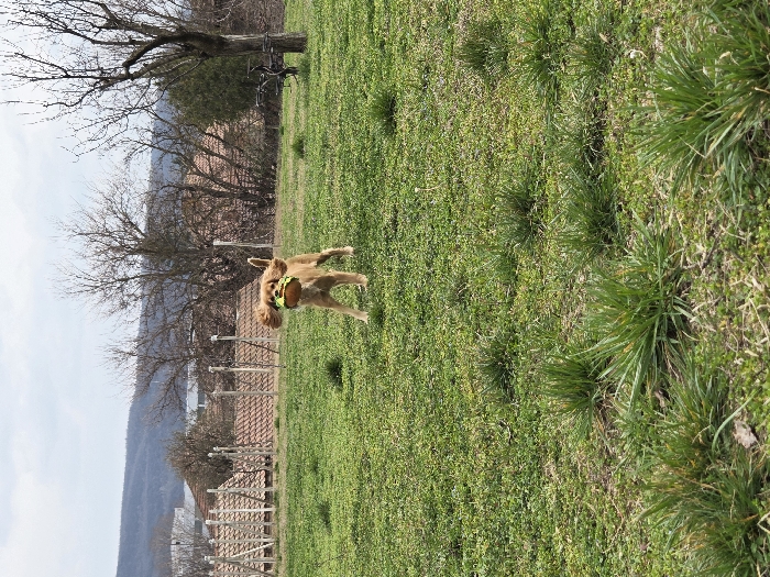 - "The image depicts a light brown dog, appearing to be a Cocker Spaniel or similar breed, in motion across a grassy field in Cherkovitsa, Bulgaria" by FM-kxY1D3, licensed under CC BY 4.0